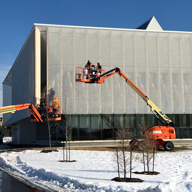 鋼闆網幕牆一般採(cǎi)用3mm-5mm厚的鋁闆制作,輕巧堅固。 具有陽極氧化或 PVDF 塗層(céng)飾面的鋼闆網不僅具有迷人的外觀,而且具有出色的耐候性和較長的使用壽命。 因此,它在建築師和設計師中越來越受歡迎